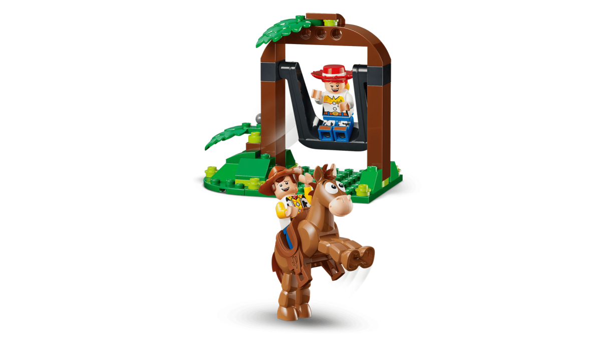 The model depicts a simplified barn build and a tree swing, based on the home of a character from the new film. Without going into spoilers, this set may be more accurate than you’d expect. The minifigures include Woody, also featured in 43301 Toy Story Slinky Dog Bookends, and Jessie from the upcoming LEGO Disney book.