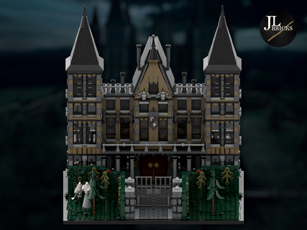 Following this research, and before I had a budget in mind, I determined that the expanded 76453 Malfoy Manor would need these three design features. The official set also provides some statues to work with, which changed places a few times during the concept phase. The octagonal hedges were similarly important to achieve, and I noted their particularly clean trim in all the material I found.