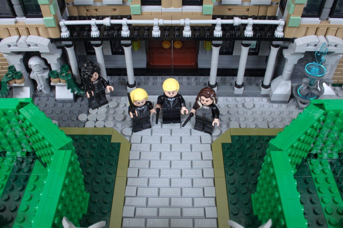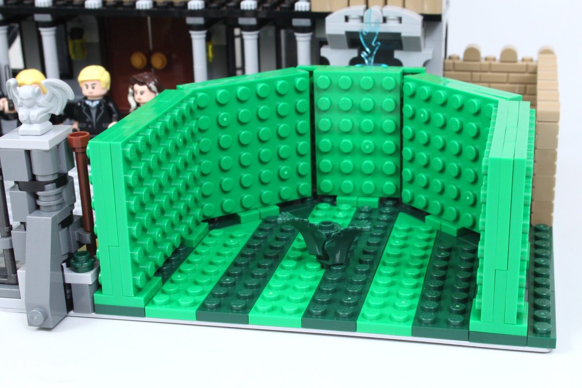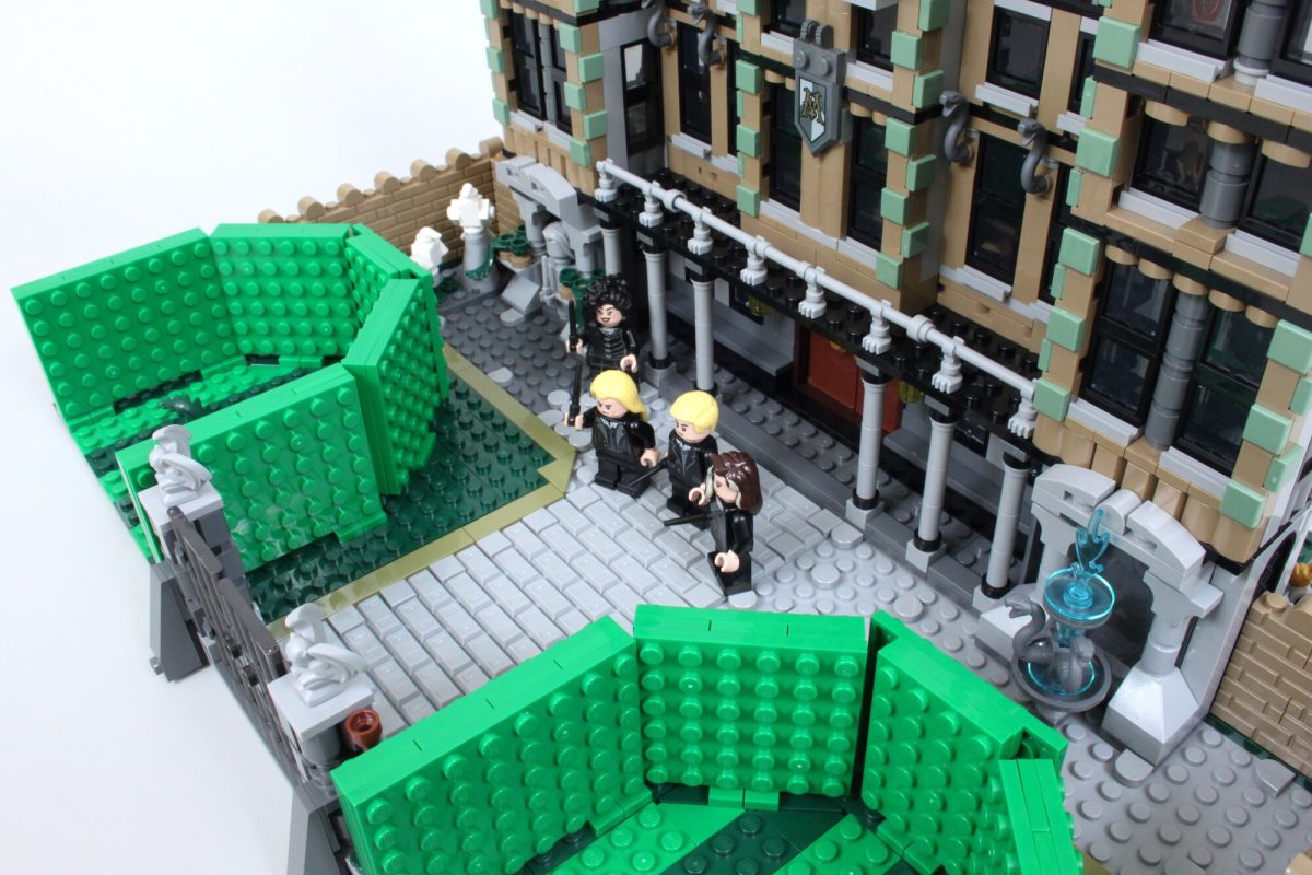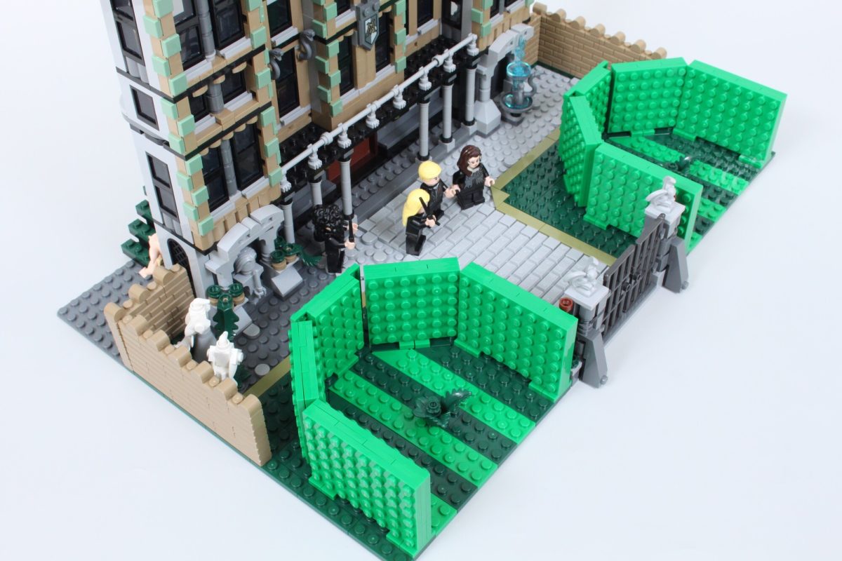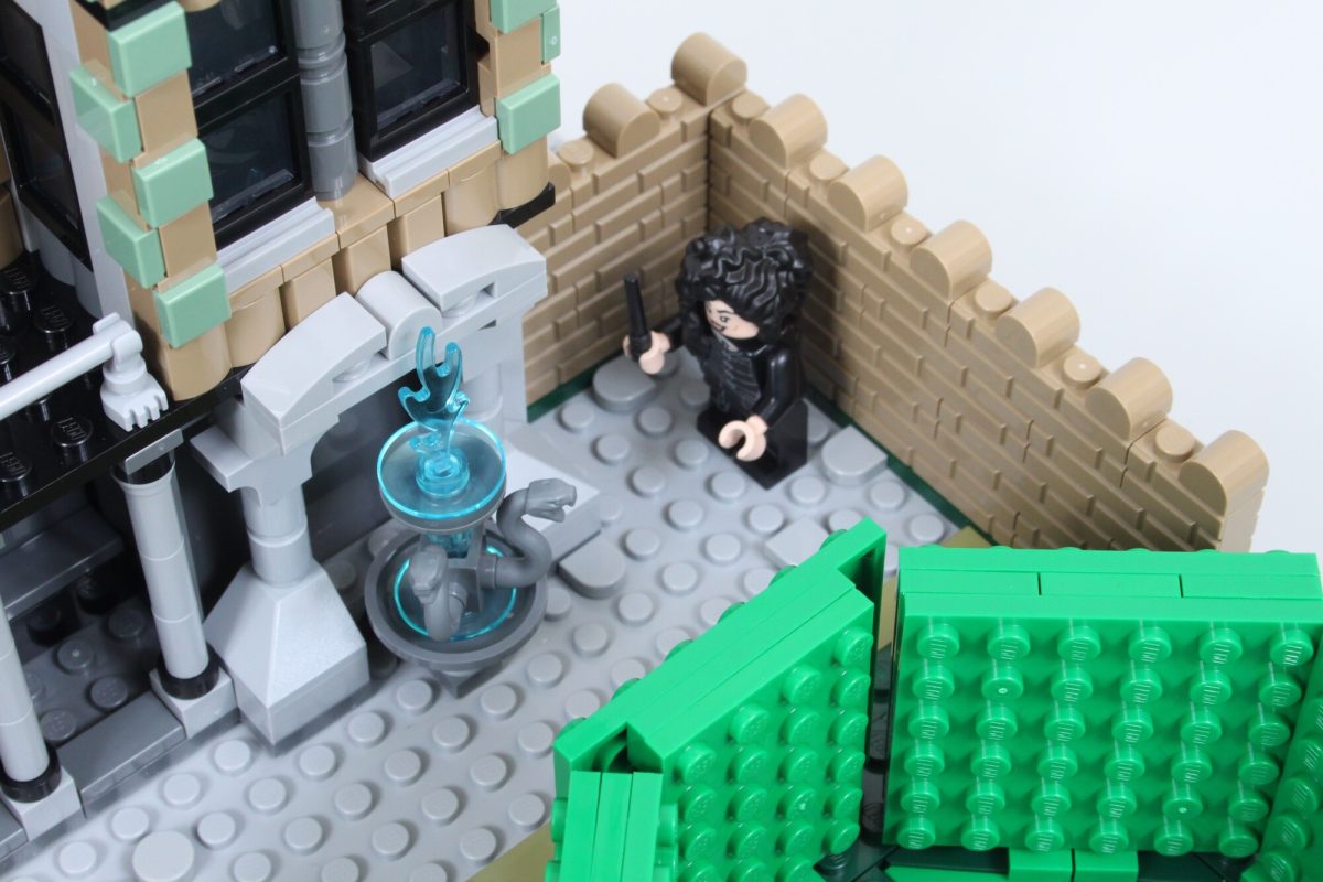 There aren’t too many innovative techniques to discuss in this feature. Much of the challenge came from finding the right colour scheme and adapting to what was available on Pick a Brick, as well as finding a spot for the included bird statues. I ended up placing them left of the front door, creating a statue-centric corner of the gardens where the Malfoys can admire the sculptures.