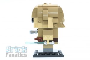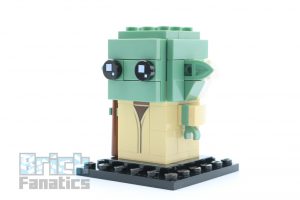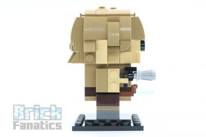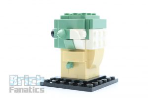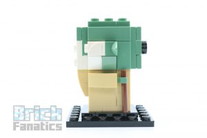 To replicate Yoda’s diminutive size, his figure does not follow the typical BrickHeadz building method, but instead something closer to Olaf from 41618 Anna & Olaf. Plates and tiles in sand-green are placed onto 1x1x1 bricks with exposed studs. The colour scheme is a good choice as the green isn’t overly bright.