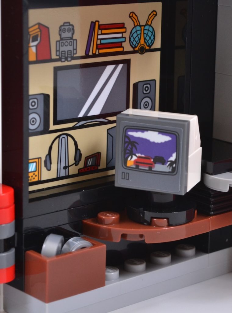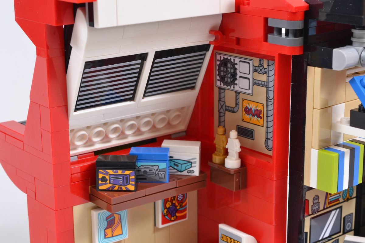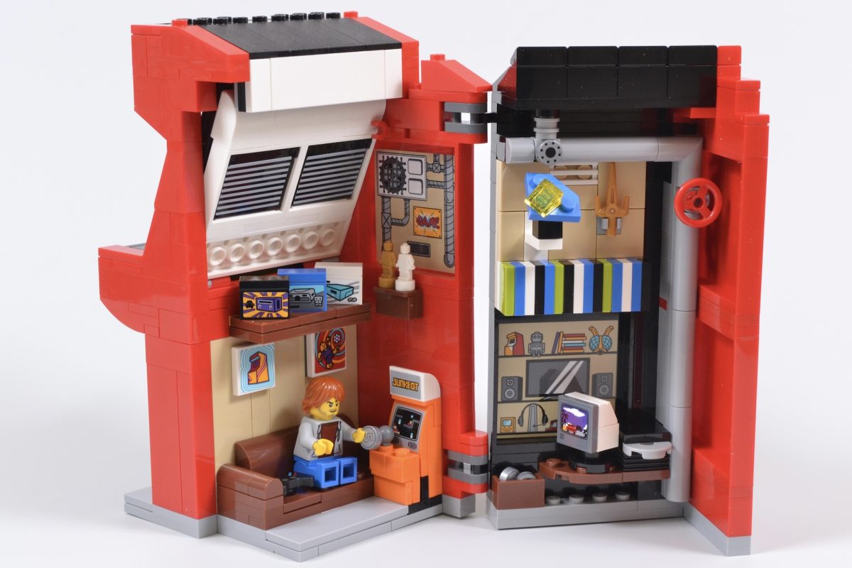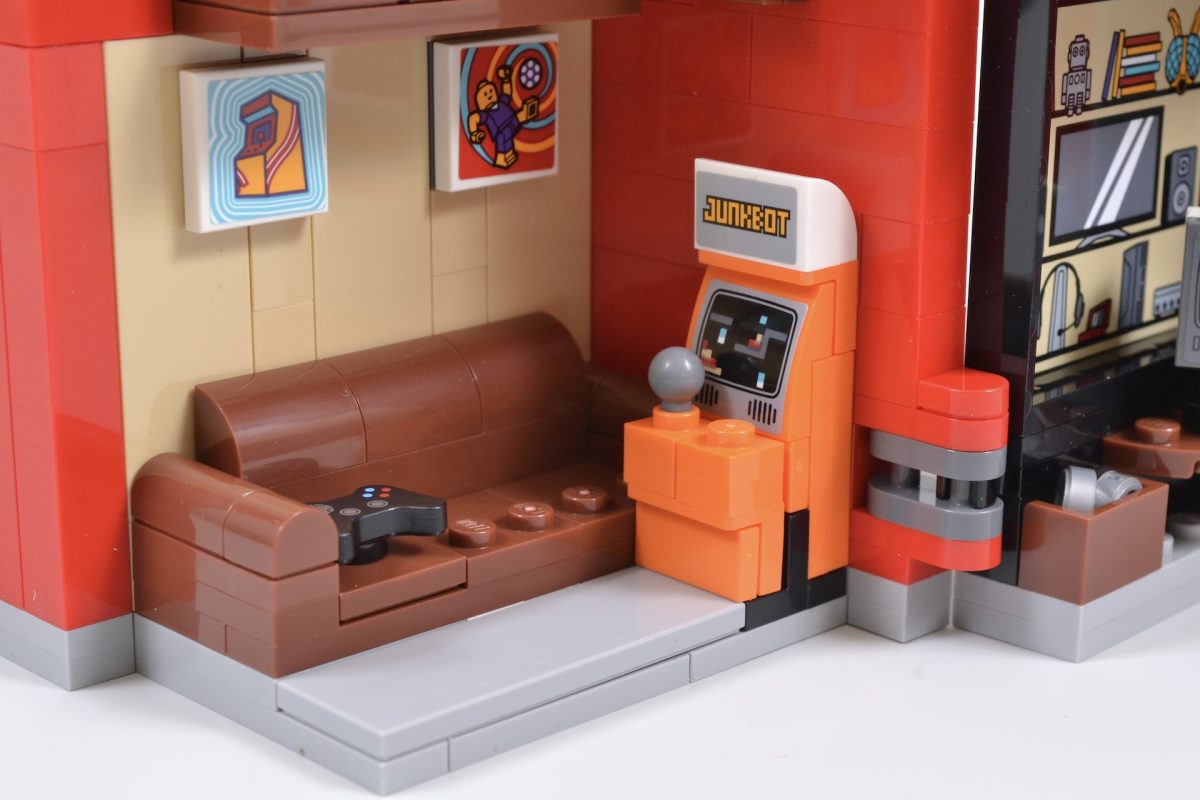 The LEGO set’s detail-packed interior also eschews licensed properties, choosing to go for a range of items that provide a wink at the company’s own video game past and themes, as well as a selection of classic retro titles.