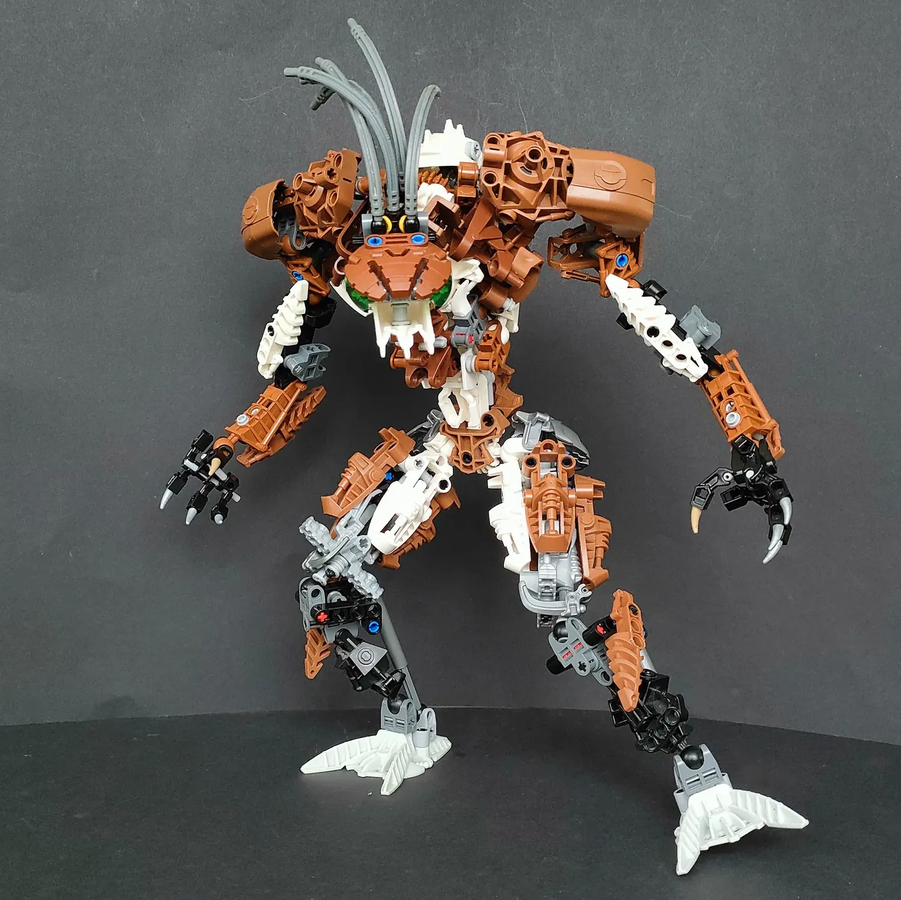 That said, the contest rules don’t explicitly call for constraction elements to be used, and some builders have consequently taken a more unorthodox System-based approach to BIONICLE. The current spread of submissions includes everything from ambitious action figures to microscale landscapes, and even a supersized take on the Tahu figure from 11021 90 Years of Play.