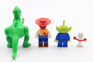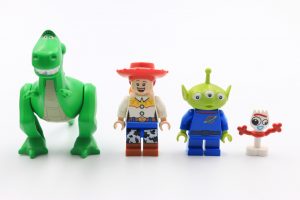 Even though he’s not a minifigure, new character Forky is a standout in 10769 Toy Story 4 RV Vacation, with a fantastic facial expression and arms that manage to look like real pipe-cleaners. Jessie is a little disappointing as her hat blends in too much with her red hair, and with a normal minifigure head she doesn’t really look like a toy doll. Both Rex and the Pizza Planet alien use existing moulds but with different printing to previous versions.